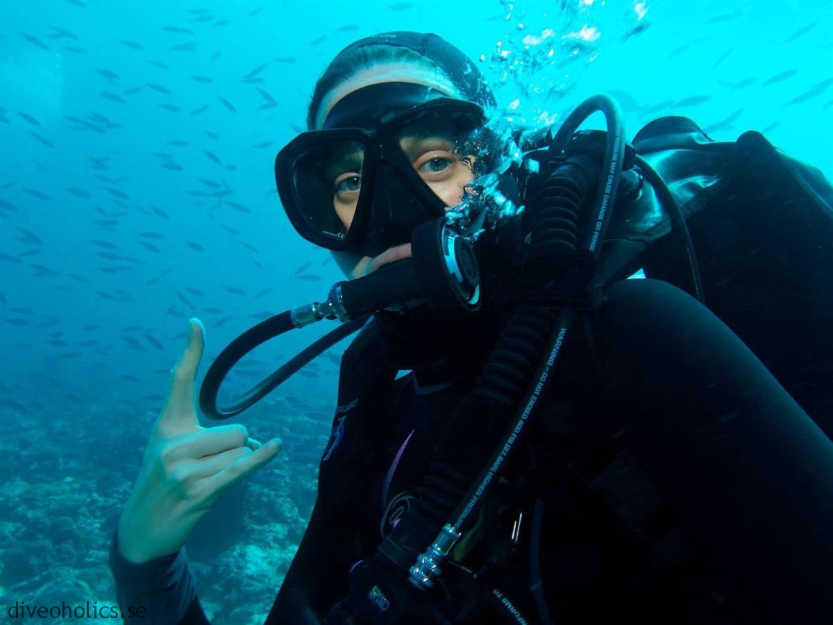 Jag har många gånger hävdat att dykning är det bästa som finns i hela universum. Ibland kan jag nästan tycka synd om alla människor som (ännu) inte har insett storheten med att hoovra viktlös 5-40 m under vattenytan! I min värld finns det ingen bättre känsla än att ligga perfekt avvägd vid något rev/vrak och låta mig gungas av vågorna (och/eller min in- och utandning). Dykning har sakta men säkert visat sig vara min personliga version av heroin. Jag kan lägga tusentals och åter tusentals kronor på nya dykupplevelser, kurser och dykrelaterade prylar. När jag inte dyker tänker, drömmer och fantiserar jag om dykning – jag frossar i minnen och hittar på underbara, potentiella framtida scenarion. När jag dyker (eller till och med när jag planerar dykning) upplever jag en otrolig eufori samtidigt som jag känner ett totalt mentalt lugn trots att tankarna och planerna kan uppta hela min tankeverksamhet under flera dagar. När jag har gjort mitt sista dyk för ett tag framöver känner jag en märklig sorg i hjärtat som jag inte kan förklara – jag upplever en känsla av meningslöshet och tomhet som inte riktigt kan fyllas och som generellt inte går över förrän nästa dykupplevelse är inbokad och planerad. Den kärlek jag känner för dykning kan jag inte jämföra med något annat. Om jag hamnar i en situation där tankar på död eller allvarlig kroppsskada väcks så är en av mina första tankar ”Herregud, om jag dör/blir blind/ allvarligt sjuk/förlamad/får problem med ben/fötter/balansen/bihålor/lungor så kan jag inte dyka mer!” vilket ökar min ångest tiofalt. Vad är ett liv utan dykning? Meningslöst? Onödigt? Slöseri? All of the above? Skönt att det snart är dags för nästa äventyr! Tanken på det har hållit mig lycklig och levande hela hösten.