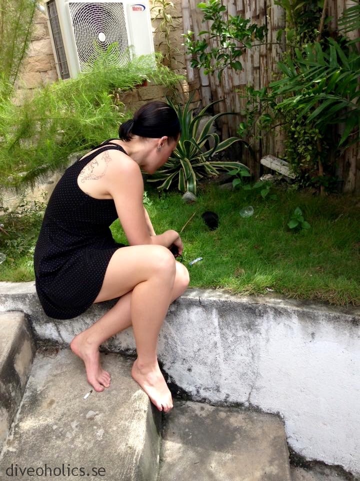 Ett resultat av alla herrelösa hundar är att det då och då dyker upp oväntade valpar på oväntade ställen. För någon vecka sen kom Mattias ut till mig efter att jag hade kommit upp från ett dyk och informerade mig om att Irish (en av instruktörerna på dykcentret) hade hittat en nyfödd valp precis utanför butiken. Jag rusade givetvis dit och fick se den sötaste lilla svarta valp som jag någonsin hade sett. Jag bestämde ganska snabbt att den tidigare väldigt stenhårda ”inte klappa några djur på Filippinerna”-regeln (som sattes upp för att Mattias skulle låta bli alla katter) inte gällde sjukt söta nyfödda valpar eftersom de omöjligen kunde ha rabies till skillnad från alla dumma katter! Valpen döptes till Neptune (efter dykcentret) men fick smeknamnet Nepp. Medan jag och Irish gullade med valpen fick vi upprepade gånger höra från alla dumma karlar på dykcentret att det var lika bra att avliva valpen ”to put it out of its misery”, eftersom den ändå skulle dö i och med att den hade blivit övergiven av sin mamma. Varken jag eller Irish tyckte att det var en bra idé att valpen skulle dö. Bara tanken på det gjorde mig ledsen och vid nått tillfälle sa jag till Mattias att jag önskade att jag aldrig hade sett valpen eftersom jag inte skulle kunna hantera om den dog. Själv kunde jag inte adoptera valpen eftersom vi bara ska vara kvar här till början av januari. Jag övervägde dock seriöst att ta med den hem till huset så att den åtminstone skulle överleva natten. Irish gjorde dock slag i saken, köpte en nappflaska, mjölkersättning och tog med sig valpen hem. Nu har valpen blivit större, öppnat ögonen och rultar omkring på egen hand. Irish har lovat att han ska komma och hälsa på minst en gång till innan vi lämnar Pangagsama Beach för den här gången!